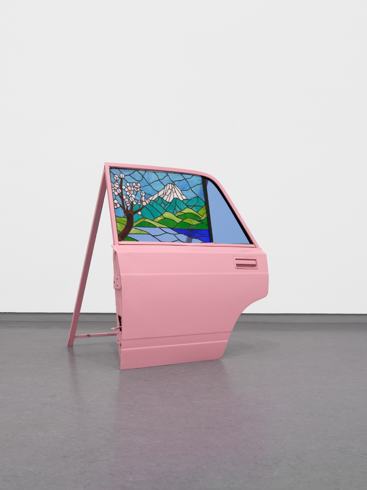 At KVOST, the artist presents his new installation The Knight at the Crossroads. At the heart of the narrative is a queer migrant portrayed as a modern knight. In traditional tales, the crossroads is a place where a hero must choose between different paths. The exhibition draws on this motif but places the moment of decision in a contemporary, dystopian context where the outcome remains uncertain. Unlike the traditional hero who returns victorious, this knight is caught in a state of constant movement and uprootedness. His vulnerable armour is symbolised by a motorcycle helmet with a visor made of traditional stained glass.